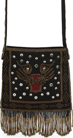 The cat-bag craze continues at the house of Valentino with a fringe-draped crossbody option covered in shimmering beadwork with crystal accents.