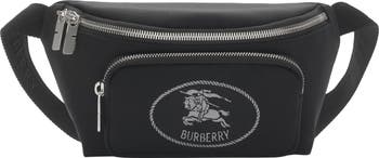 First seen on Burberry bags in the '80s, an archival Knight motif rendered in reflective fil coupé brings an iconic look to this compact style that can be worn as a belt bag or crossbody.