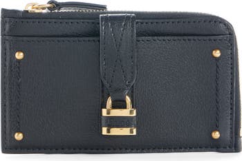 This wallet take on the It bag of the '00s retains the iconic details—including that chunky padlock—that made it instantly recognizable among the fashion cognoscenti. Made of beautifully grained leather, this compact wallet is cinched with a belted pocket and peppered with shiny studs.
