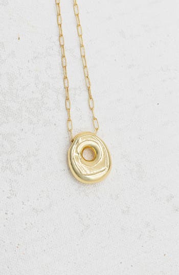 Gold plated paperclip chain necklace, with 18K gold plated bubble letter charm. Lobster clasp closure.