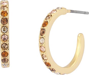 Neutral-tone pavé crystals line these huggie hoop earrings that add subtle elegance to your ensembles.