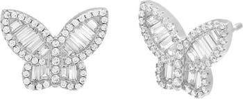 Small Pave X Baguette Butterfly Stud Earring