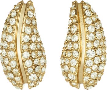 Pavé crystals and a curved silhouette embody sunshine on ocean waves in these golden drop earrings.