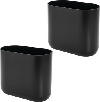 iDesign Small Plastic 1.9 Gallon / 7 L Oval Bathroom Trash Can, 2-Pack, Black, Main, color, Black