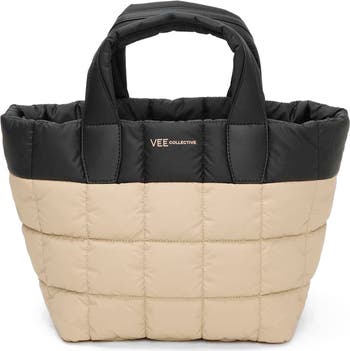 The label stays true to its ethos of creating lightweight, functional essentials with this pillowy tote crafted from water-repellent recycled nylon in a colorblocked design.