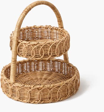 A charming companion to our much-loved original Rattan Two Tiered Stand, this Small Rattan Two Tiered Stand brings both beauty and function to your countertop. Handwoven from natural rattan, it features a graceful, looping pattern that elevates everyday storage. Whether filled with fruit, pastries, or your favourite teas, it's destined to become a focal point in your kitchen, pantry, or breakfast nook.Pair with the full-sized version for a beautifully layered look.