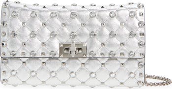 House-signature Rockstuds and bezel-framed crystal embellishments double the dazzle of this statement-making shoulder bag crafted from light-catching metallic lambskin.