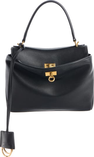 The epitome of understated luxury, this top-handle bag crafted of supple calfskin leather features a slouchy silhouette that's adjustable with side snaps.