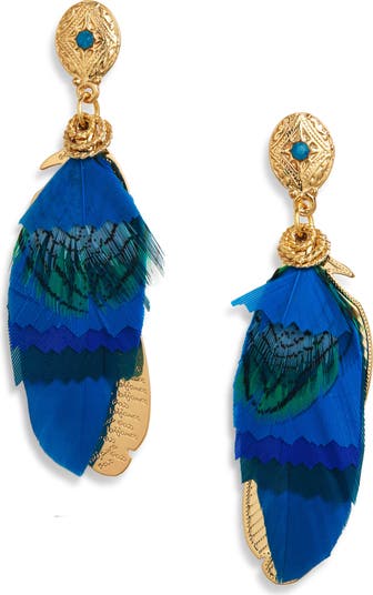 Bring boho vibes to night-out ensembles with these vibrant drop earrings featuring supersoft feathers and diminutive charms.