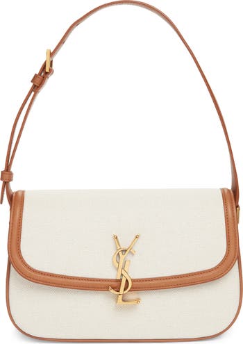 A turnlock embedded directly into the house-signature monogram hardware opens this scaled-down shoulder bag crafted from creamy-hued canvas and detailed with rich Italian leather.