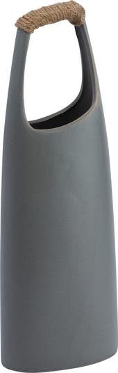 - Add some texture and charm to the home with this grey vase that features a rattan wrapped top handle that adds some natural and rustic flair to the space