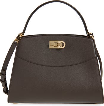 A scaled-down boxy silhouette refreshes a signature bag crafted in Italy from richly grained calfskin leather and finished with gleaming Gancio hardware. A removable shoulder strap offers an additional carrying option.