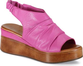 The SMALL TOWN slingback wedge sandal by Diba True brings effortless charm to your warm-weather wardrobe. Crafted in genuine leather, this versatile style features a soft round toe, flattering ruching detail across the front, and an easy elastic slingback strap for a secure fit. A 2-inch wedge heel offers the perfect balance of comfort and lift, making it an ideal choice for everyday wear or casual outings.