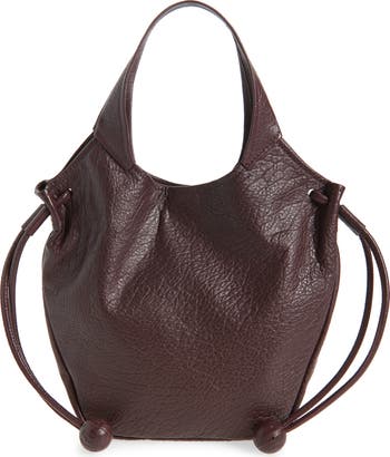 Glossy baubles inspired by vintage travel trunks trim the side ties of a streamlined tote fashioned in Italy from softly grained sheepskin.