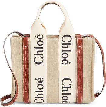 Chloé's classic logo stands out at the sturdy straps of this scaled-down tote in linen canvas set off with topstitched leather trim. The style comes with a crossbody strap for the option of hands-free carry.