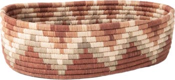 A smaller version of the larger Bread Basket, the Small Bread Basket is perfect and functional for everyday family dinners to entertaining with friends. Part of the Elevate Collection, the 2025 small batch annual basket collection. Handcrafted by women artisans from the Batoro living in the very rural mountains of Western Uganda. These weavers are a part of a cooperative that provides training to single mothers, widows and other marginalized women who are subsistence farmers and weave baskets to provide additional income. Made from all natural, sustainably sourced raffia and banana fibers. Unique, bold mix of natural and AZO free dyes - Natural dyes are made from various plant materials grown in artisan’s villages. The women grow, harvest and make all the natural dyes which take a great deal of knowledge and skill to produce. The hand-dyed raffia is twisted and wrapped around coils of banana fibers, creating structure and intricate designs. No two baskets are identical - there will be slight variations in size and color from the one shown due to the handmade nature of each product. Each basket is both special and unique.