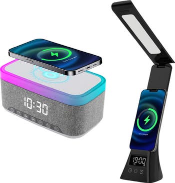 - Pursonic All-in-One Alarm Clock with Bluetooth Speaker, FM Radio & Wireless Charging. Transform your nightstand into a high-tech comfort zone. The Pursonic All-in-One Alarm Clock blends essential features in one elegant device—featuring a Bluetooth speaker, FM radio, Qi wireless charging pad (up to 15W), LED alarm display, and soothing sleep sounds. Key Highlights: Bluetooth Speaker: Stream music or podcasts with crisp, immersive audio. FM Radio: Tune in to your favorite stations instantly. Wireless Charging Pad: Charge Qi-compatible phones fast—no messy cables. LED Display with Alarm: Bright, easy-to-read screen with adjustable brightness. Sleep Sounds & Night Light: Relax with calming sounds and soft ambient lighting. Perfect for: Bedrooms, dorms, and guest rooms—designed to declutter and elevate your space. Pursonic 3-in-1 LED Desk Lamp with Wireless Charger & Digital Clock: Upgrade your workspace with style and efficiency. The Pursonic 3-in-1 LED Desk Lamp combines adjustable LED lighting, Qi wireless charging, and a digital clock with alarm into one minimalist design. Key Highlights: Adjustable Lighting: Touch-sensitive controls for brightness and mode. Qi Wireless Charger: Fast charge at 5W, 10W, or 15W—vertical or horizontal. Digital Clock & Alarm: Stay punctual with 12/24-hour display options. USB Powered: Plug into laptops or wall adapters—no batteries needed. Modern Aesthetic: Compact and elegant, fits any room décor. Perfect for: Workspaces, study areas, or bedside use—functional and stylish. Why You’ll Love This Bundle: Combines 8+ smart features across two compact, modern devices. Keeps your space organized, illuminated, and powered up. Ideal for home offices, dorms, or minimalist living setups. Great gift choice for students, professionals, or gadget enthusiasts.