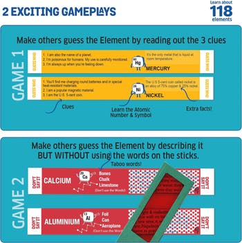 Learn facts about the periodic table with 60 smart sticks in this fun-filled game. Assemble the sticks to build a puzzle on the reverse side!