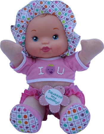 • Goldberger Baby's First 12" Smartie Pants Doll with Raspberry Pink T-Shirt - Includes "Baby Talk" Sound Module with Surprise Raspberry Ending