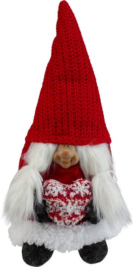 Perfect for the one that holds your heart, this gnome is cute and would be a great addition to your Christmas or Valentine's Day decor. Perfect to place on any tabletop in your home. Product Features: Female gnome features a red winter cap and red dress with white trim Gnome is holding a red and white striped heart Flexible wire in hat and arms allows for it to be positioned to your liking Features a weighted bottom, making her perfect for any tabletop Recommended for indoor use only Dimensions: 12.5"H x 7"W x 5.5"D Material(s): fabric/faux fur