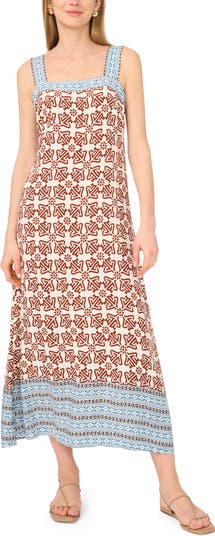 A paisley print emboldens this smocked-back maxi dress topped with a sharp square neck and thick straps.