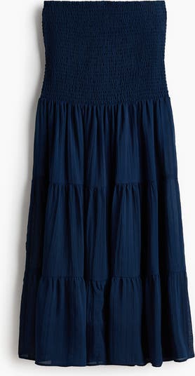 Maxi skirt in crinkled chiffon with a smocked section over the hips and a loose-fit, gently flared bottom section with gathered tiers. Unlined.