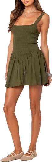 A smocked bodice and a dropped-waist design creates a flouncy hem on this sunshine-ready minidress that's perfect for a brunch date.
