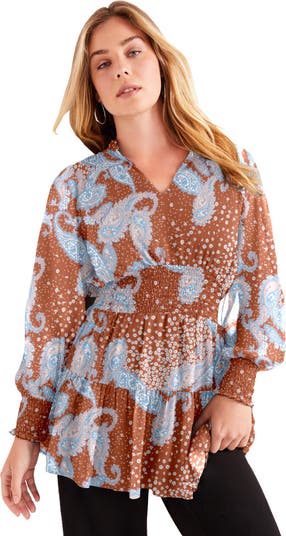 Pretty smocking at the V-neckline, sleeves, and empire waist make this tunic a feminine standout. Pair it with your favorite leggings or jeans for an elevated, everyday look. Or, for a fun and flirty look, style it as a dress with knee-high boots. Lined body.