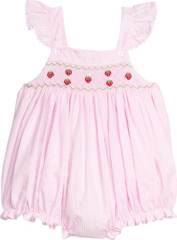 The Lizzy D Bubble features tank top straps that button at the chest and ruffled details at the flutter sleeves and leg openings. With beautiful smocking at the chest and colorful embroidery, this bubble is sure to be a favorite!