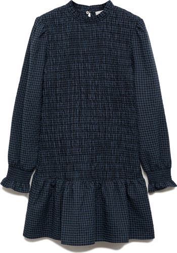 A smocked bodice offers a perfect fit with every wear of a long-sleeve stem-baring dress patterned in gingham checks to elevate your look.