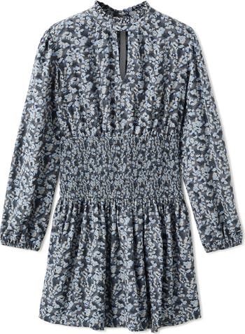 Smocked Print Long Sleeve Dress