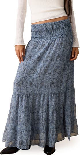 Smocked Print Maxi Skirt