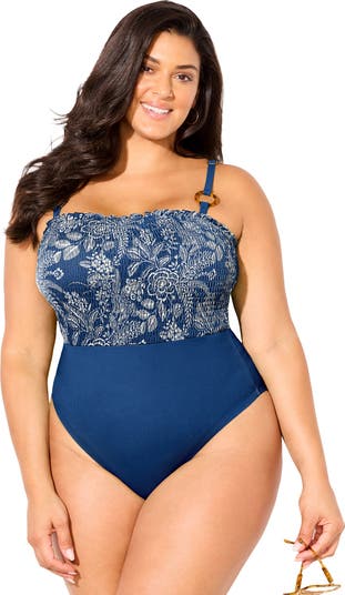 This one-piece swimsuit blends texture and tailoring for a head-turning look. The smocked bodice flatters every curve with soft stretch and subtle shaping, while sewn-in cups provide smooth coverage. Decorative rings at the straps add a modern accent. Adjustable and convertible straps let you personalize your style and support. A Power Mesh–lined front and full seat coverage ensure confident comfort from beach to boardwalk.