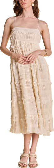 Floaty frills enhance the romance of this light and lovely maxi textured with soft shirring and suspended by supportive adjustable straps.