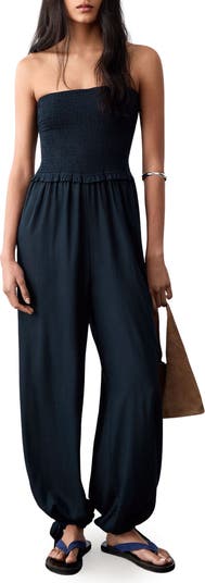 Smocked Strapless Jumpsuit