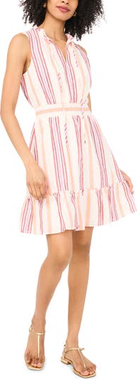 A smocked waist shapes the silhouette of this lightweight linen-blend mini covered in lively stripes and finished with a floaty frilled hem.