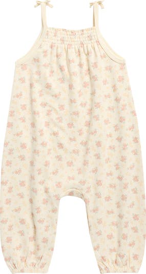 Baby will be looking their most precious in this floral romper made of airy organic cotton and designed with stretchy smocking at the yoke.