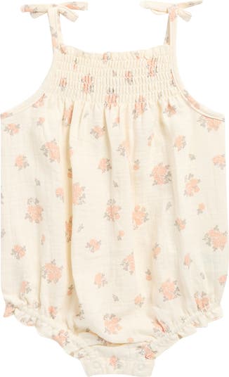 Baby will be looking their most precious in this floral romper made of airy organic cotton and designed with stretchy smocking at the yoke.