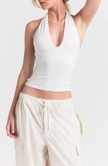 Ultrasmooth stretch-modal fabric meets the brand's body-hugging fit in this slinky halter-neck camisole featuring an interior shelf bra.