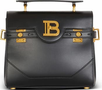 - Handle and detachable shoulder strap with Balmain engraved snap hooks