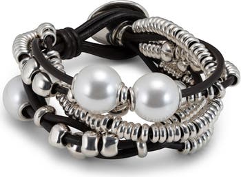 A single loop of leather is finished with polished sterling silver-plated end caps and a secure hook clasp.