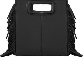 Maje’s iconic M bag is available in smooth leather in this season’s colours. Fringing, sheathed handle, topstitching, embossed gold logo, engraved signature on the snap hooks, magnetic tab closure. Cotton lining. Removable and adjustable 81 cm shoulder strap. Wear over the shoulder, carry by hand or wear cross-body with the adjustable and removable leather shoulder strap.