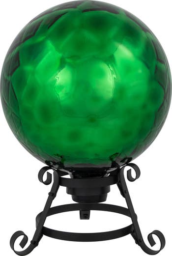 Transform your garden into a whimsical wonderland with our mesmerizing glass outdoor garden gazing ball in a captivating green hue. Inspired by the intricate patterns of a turtle shell, the enchanting, smooth design adds a touch of charm and intrigue to any outdoor space. Its unique surface features subtle variations and circular impressions reminiscent of craters on a distant planet, giving it an artful, celestial quality. Whether nestled among foliage or placed atop a pedestal, let this stunning gazing ball evoke a sense of magic and serenity in your garden oasis. Product Features: Smooth green garden gazing ball Rounded indentations add uniqueness Crafted with a turtle shell inspired design Can be filled with lights for an added touch of flair Stand not included For outdoor use Dimensions: 12" high x 10" diameter Material(s): glass