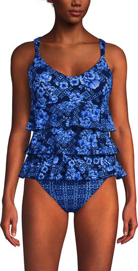 - Faux tankini top gives the look of a two-piece with the easy fit and modest coverage of a one-piece