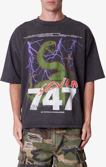 Distressed graphics stamp the brand's distinctive signature on this relaxed T-shirt cut from soft, breathable cotton that feels cool and comfortable all day.