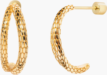 Celebrate the Year of the Snake with our captivating Snake Double Hoop Earrings. Featuring a bold intertwined design inspired by a serpent's graceful curves, these earrings showcase detailed scale textures and a sleek 14k gold-plated finish.