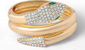 A snake gold bangle bracelets with rhinestone accents, offering a luxurious and sparkling addition to your jewelry collection.
