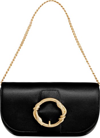 Shiny serpentine ring hardware echoes the gleam of the chain strap that carries this soft leather crossbody bag.