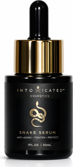 Intoxicated Cosmetics Snake Serum is a luxurious, daily-use anti-aging formula powered by clinical percentages of SYN-AKE® Peptide, which helps skin to look relaxed, visibly reducing and preventing mimic wrinkles (botox-inspired efficacy) and re-densifies skin from within, smoothing deep wrinkles. This biomimetic peptide inspired by Temple Viper Snake venom delivers powerful action to smooth the appearance of expression lines around the forehead, eyes, and mouth.