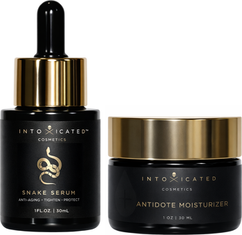 This Snake Serum + Antidote Moisturizer Bundle is the perfect anti-aging duo, giving you a luxurious blend of anti-aging actives to treat fine lines and wrinkles while simultaneously sealing in moisture and hydration.